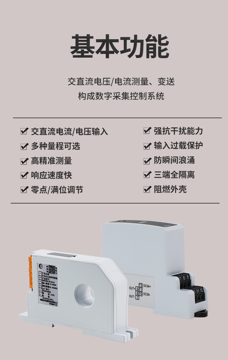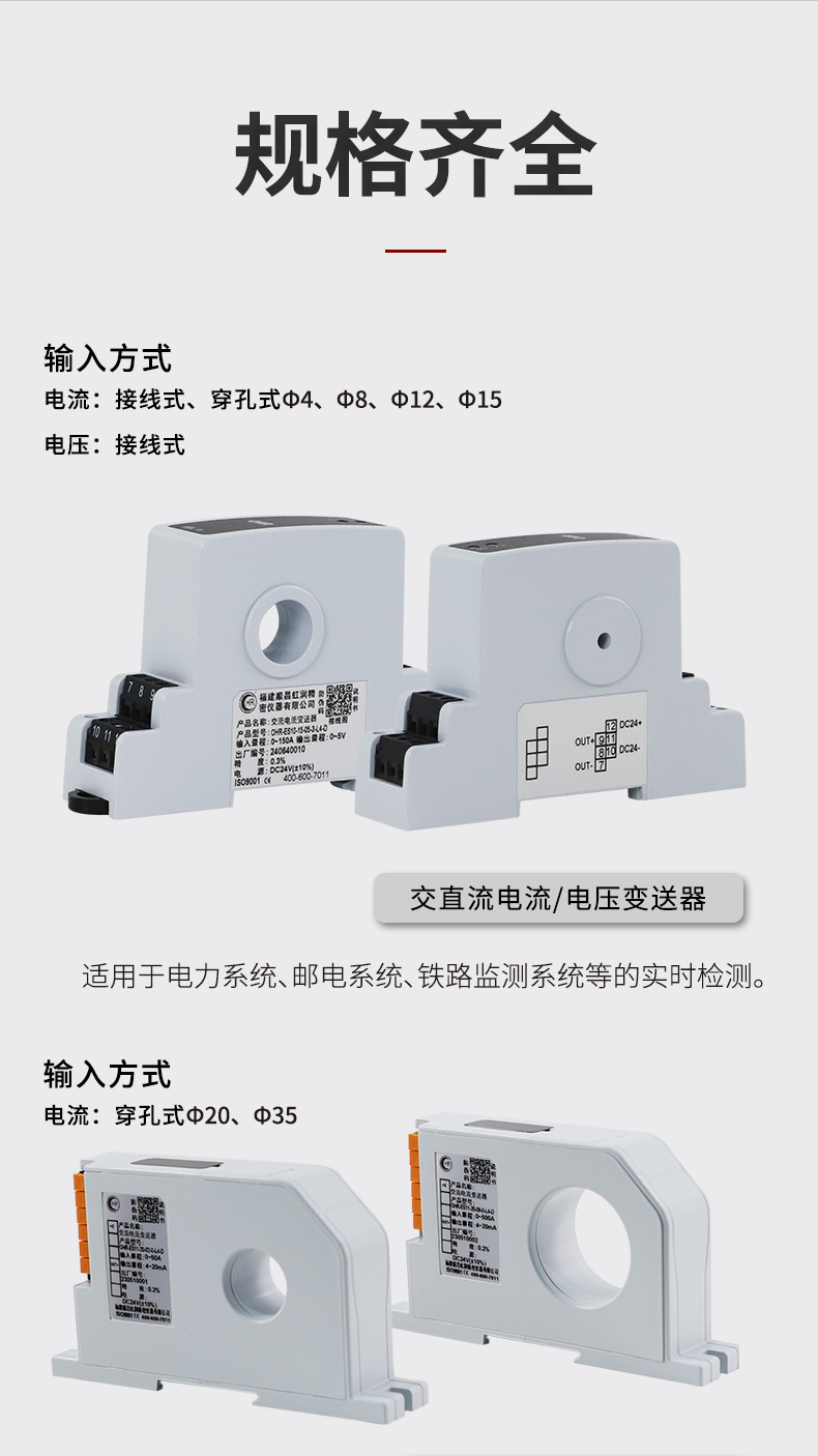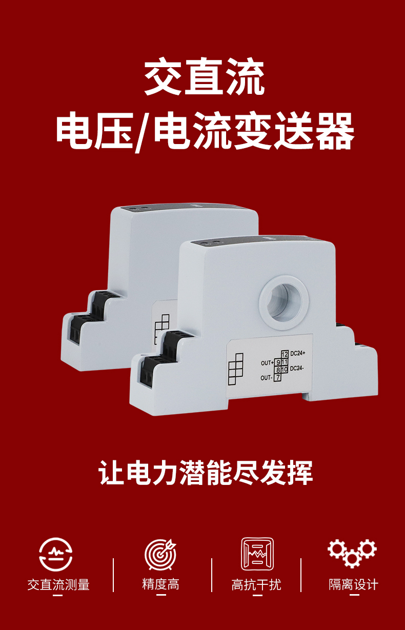 虹潤公司是專業生產電流傳感器的國家專精特新“小巨人”企業。生產的交流電壓/電流變送器,具有交流電壓/電流輸入、高精準測量、響應速度快、高抗干擾、全隔離設計等特點。產品獲得一種交流信號變送器、交直流信號轉換電路、基于DCS技術的盤裝式三相電量表等3項國家發明專利,主持起草工業過程控制系統用模擬輸入兩位或多位輸出儀表國家標準,直流漏電流傳感器規范、通信系統多通道數據采集控制終端規范等2項軍用標準,以及現場設備集成等5項智能制造國家標準,參與國際5G標準制定。產品廣泛應用于工業自動化、電力、新能源、科研實驗基礎設施等需要電力參數監測的領域。