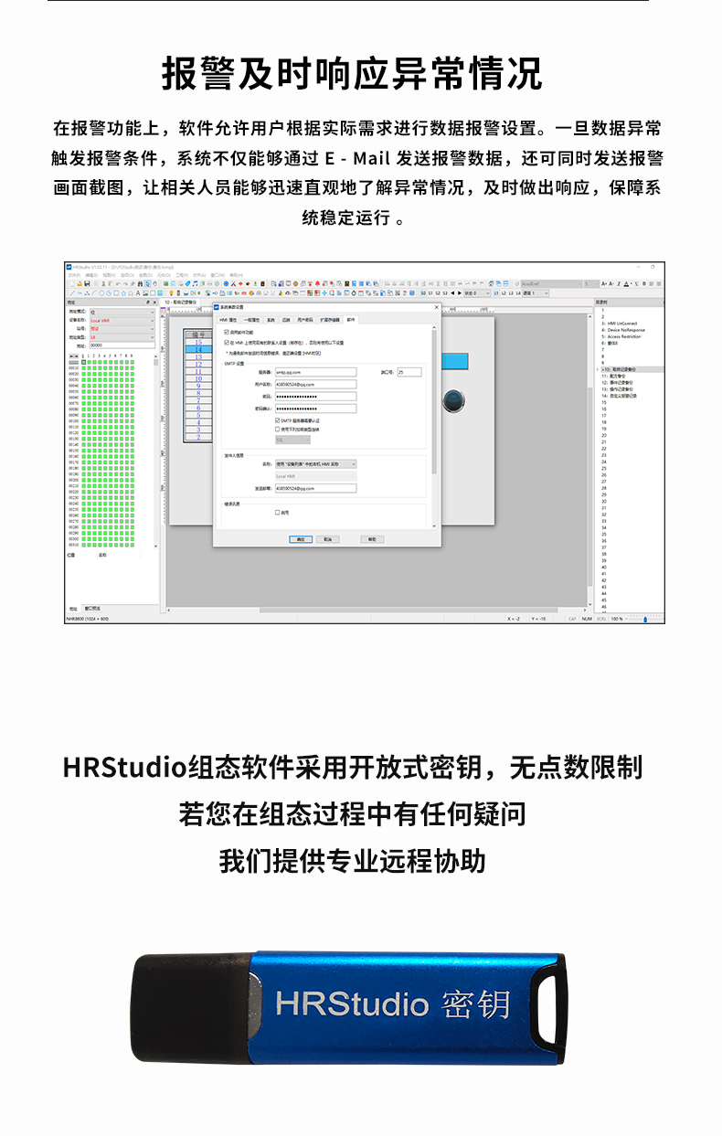 虹潤(rùn)?HRStudio?組態(tài)軟件采用開(kāi)放式密鑰,無(wú)點(diǎn)數(shù)限制;凡購(gòu)買虹潤(rùn)帶有 RS485/232、以太網(wǎng)通訊功能的儀表,單筆訂單滿 3800 元,即免費(fèi)贈(zèng)送HRStudio 組態(tài)軟件及對(duì)應(yīng)密鑰;若您在組態(tài)過(guò)程中有任何疑問(wèn),我們提供專業(yè)遠(yuǎn)程協(xié)助。